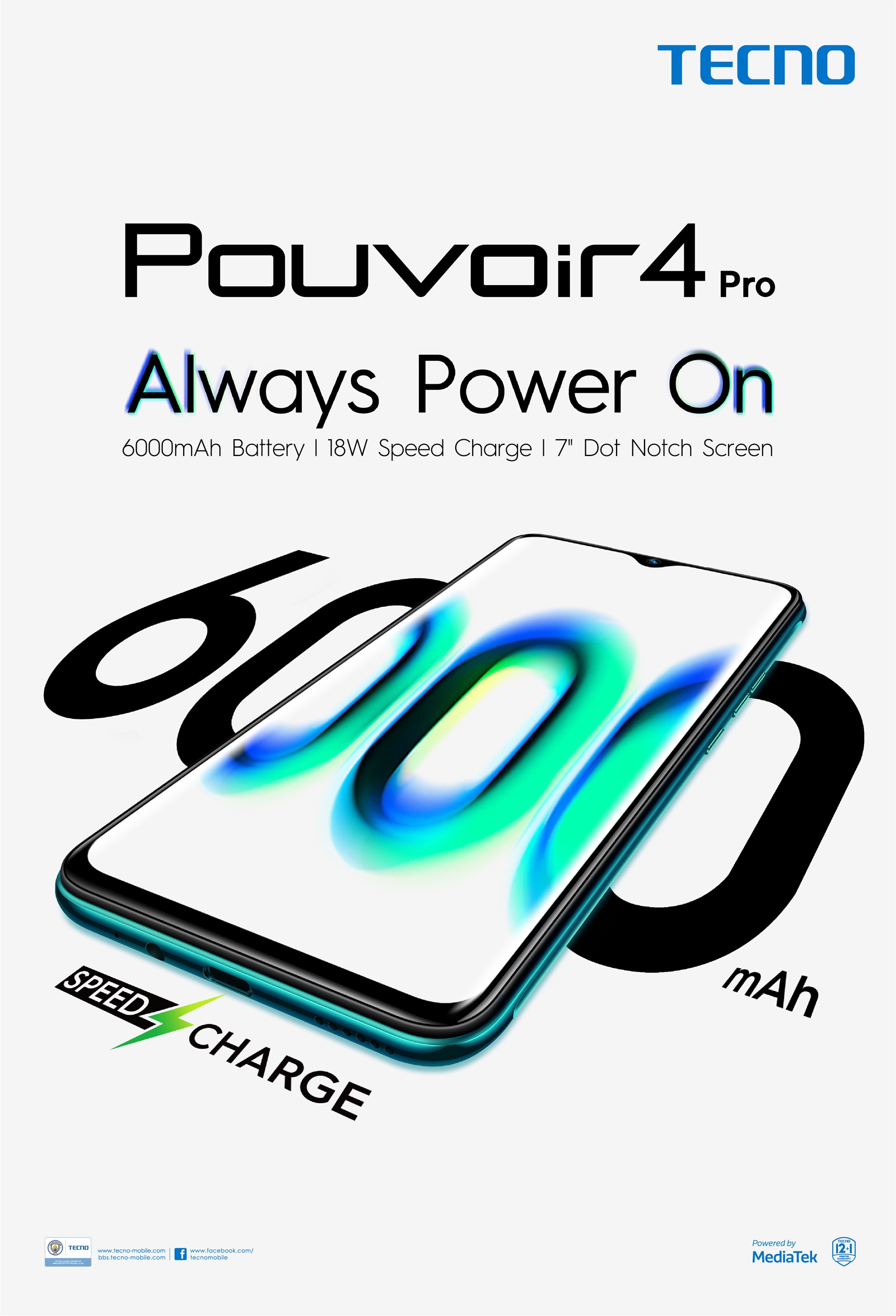 TECNO Mobile launched on September 17, 2020 the latest addition to its popular Pouvoir series, Pouvoir 4. True to the meaning of “pouvoir”, the smartphone comes with a powerful battery life at 6000mAh, capable of powering the smartphone for four days straight with just a single charge. In combination with the smartphone’s 32GB + 3GB for the Pouvoir 4 and 64GB + 4GB , 128GB + 6GB for the Pouvoir 4 Pro memory which truly delivers a smooth, glitch-free gaming experience, the Pouvoir 4 proves that it’s one of the most hardworking and performing mobile devices in the market today.