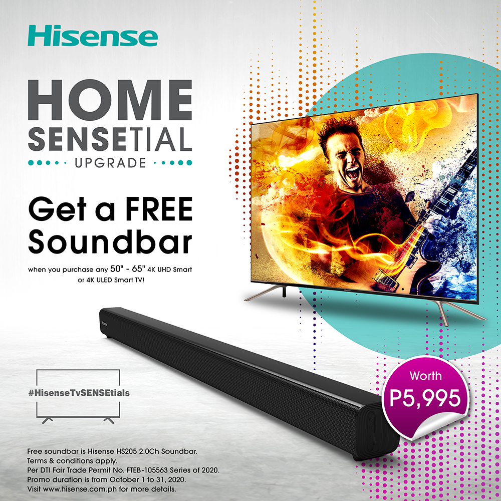 Price for the 55” TV starts at P33,950, and for the 65”, price begins at P52,950. Get a free soundbar when you buy any Hisense 4K ULED Smart TV from partner retail stores or ecommerce sites. Promo runs until October 31, 2020 only.