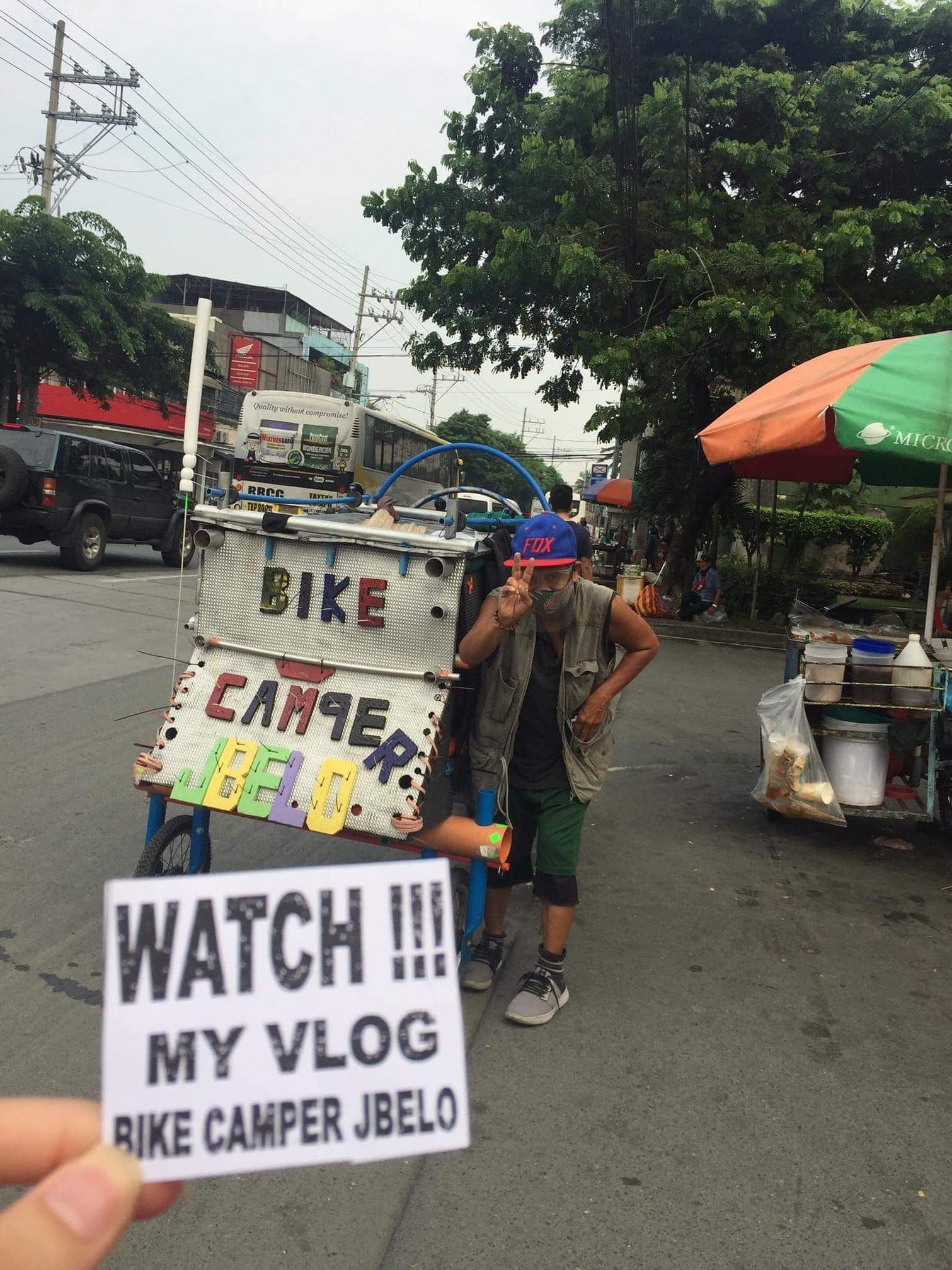 His journey started by creating an improvised camper bike made of recycled scrap materials from junk shops. With his makeshift van and GoPro Hero 8, he treks around Metro Manila for long days and documents and uploads his experiences along the road on his channel. He has been to numerous destinations and brought smiles to kids in Calamba, Cavite, Laguna, and Rizal.