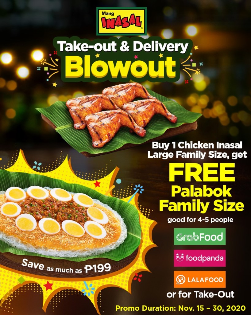 To give more customers the chance to enjoy this Takeout and Delivery Blowout, Mang Inasal customers can buy only up to a maximum of three orders of Chicken Inasal Family Size Large meals per transaction.