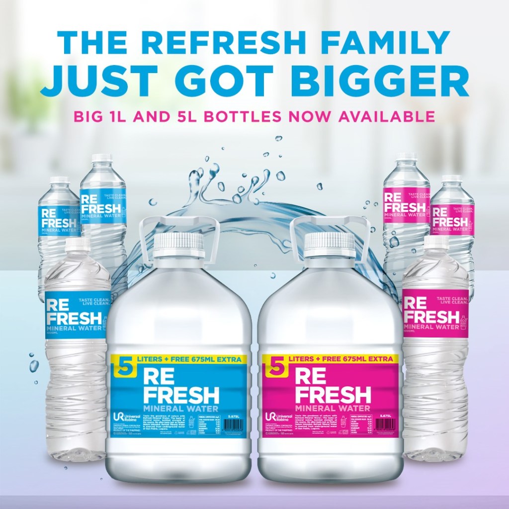 To make sure Families and individuals stay refreshed at home, they can enjoy Refresh Mineral Water in 350mL, 500mL, and now in big pack sizes: 1L and 5L (with free 675ML). The new big packs of Refresh Mineral Water are available in groceries, supermarkets, and convenience stores nationwide for only P14.60 and P55.00 (SRP) respectively.