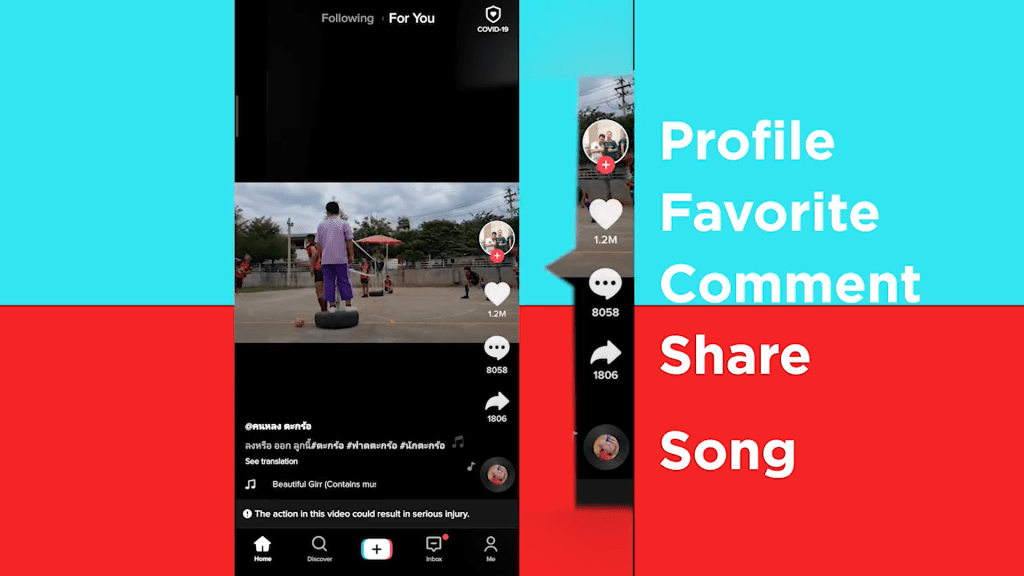 - Song – The spinning record at the bottom right of the screen represents the song or sound clip that’s playing in the video. Tap on it to see details about the song.