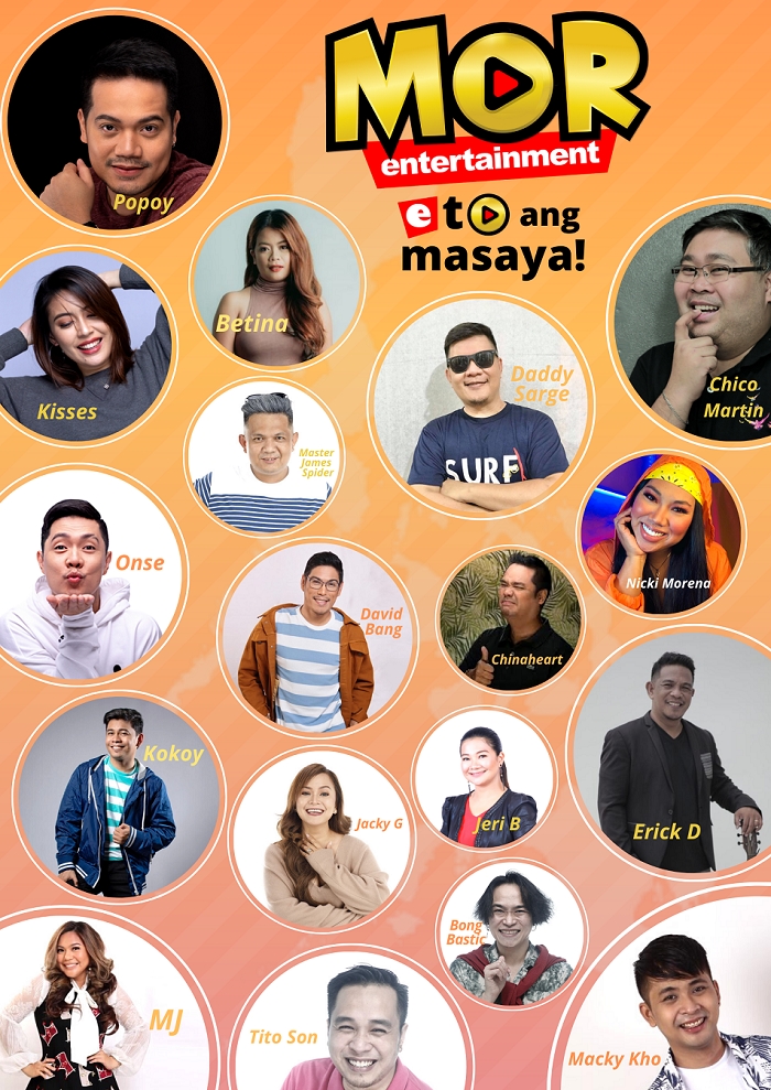 The entire MOR entertainment family—composed of Ateng Jeri B, Betina Briones, Bong Bastic, Chico, Chinaheart, Daddy Sarge, David Bang, Erick D., Jacky G, Kisses, Kokoy, Grasya Pantasya, Macky Kho, Mary Jay, Master James Spider, Nicki Morena, Onse, Popoy, and Tito Son—is ready to bring more fun and laughter to viewers worldwide.