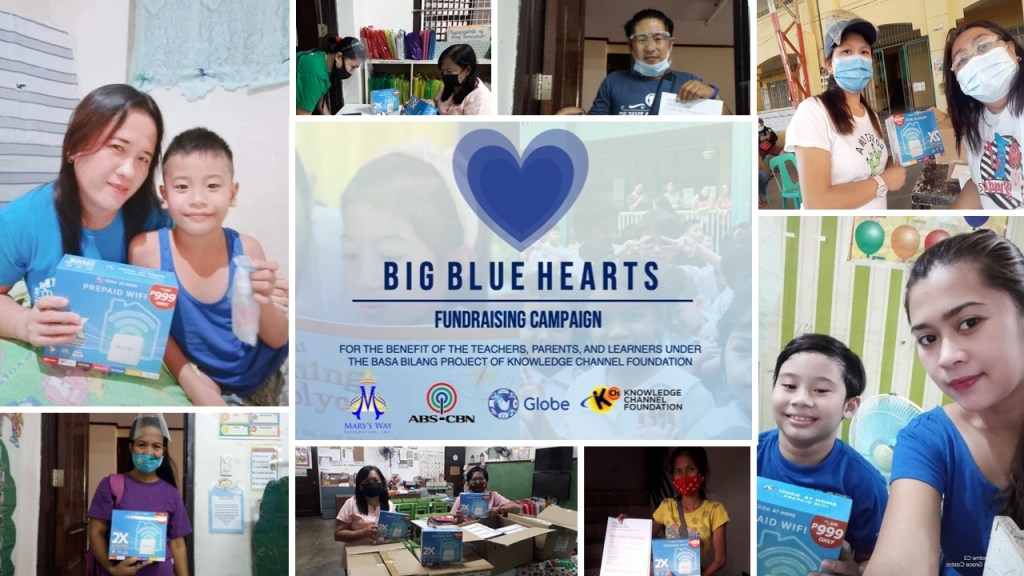 Globe has partnered with Knowledge Channel Foundation Inc. (KCFI), ABS-CBN, and Mary’s Way Foundation through the Big Blue Hearts Campaign to enable learning with the help of free internet connection.