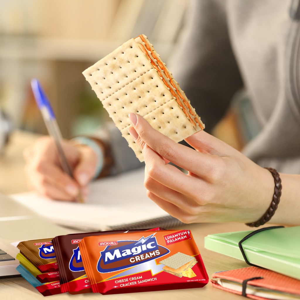 A midday snack is great for giving you that quick boost of energy in between tasks. One snack you should try is Jack ‘n Jill Magic Creams, which are crunchy crackers that comes with Linamyum Palaman cream filling – Chocolate, Butter, Condensada, Peanut Butter, and now with a new flavor, Cheese.