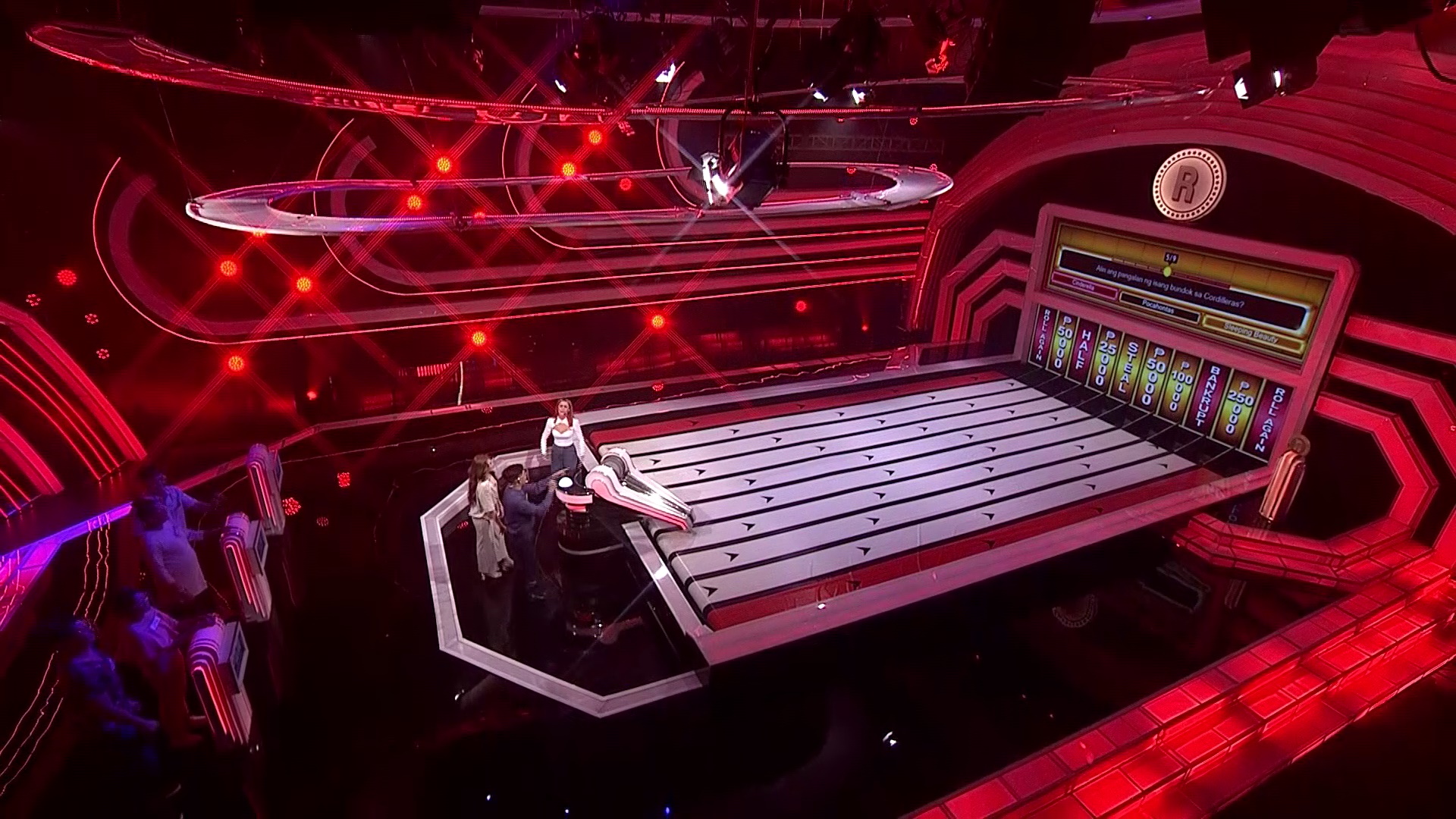 The teams will test their luck through the roll of a coin on a giant arcade machine and will compete through a series of questions and choices together. They can opt to PLAY to roll again and answer another question, increasing their chances to earn, or to PASS the opportunity to a different pair, especially when the risk of losing their earnings is at stake. The pair who earns the most money after 9 questions advances to the Jackpot Round.