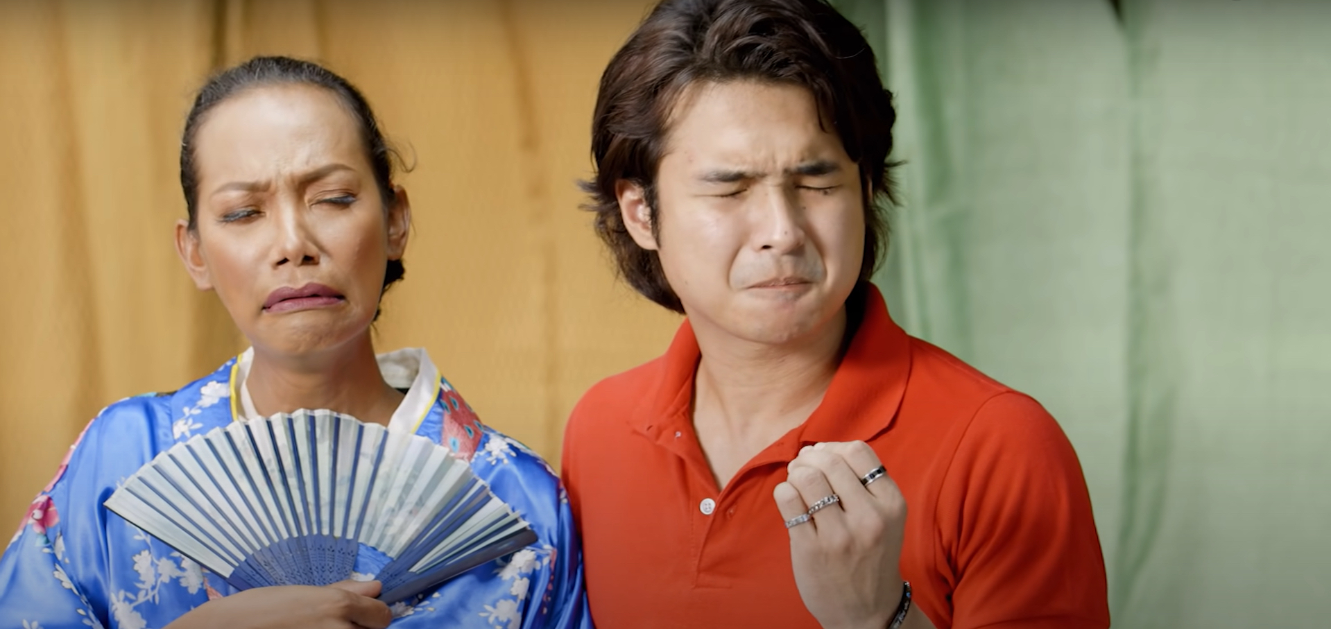In the third episode of “GVBOYS”, Jawo is shooting for a commercial booked by Kathryn B (Aling Pearly’s brother). When things get out of hand, Kathryn steps in to do a kissing scene in his place. This ends in Kathryn being punched by the boyfriend of the actress he kisses in the scene, jeopardizing their roles.