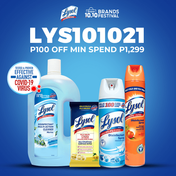 And because Lysol knows that consumers in these times constantly seek real value for money, you can also enjoy an additional Php 100 off for a minimum spend of Php 1,299 when you use the special voucher codeLYSOL101021. Not to be missed as well are the special Rush Hour Deals from 12AM to 2AM where you can get the best prices on your home cleaning essentials!