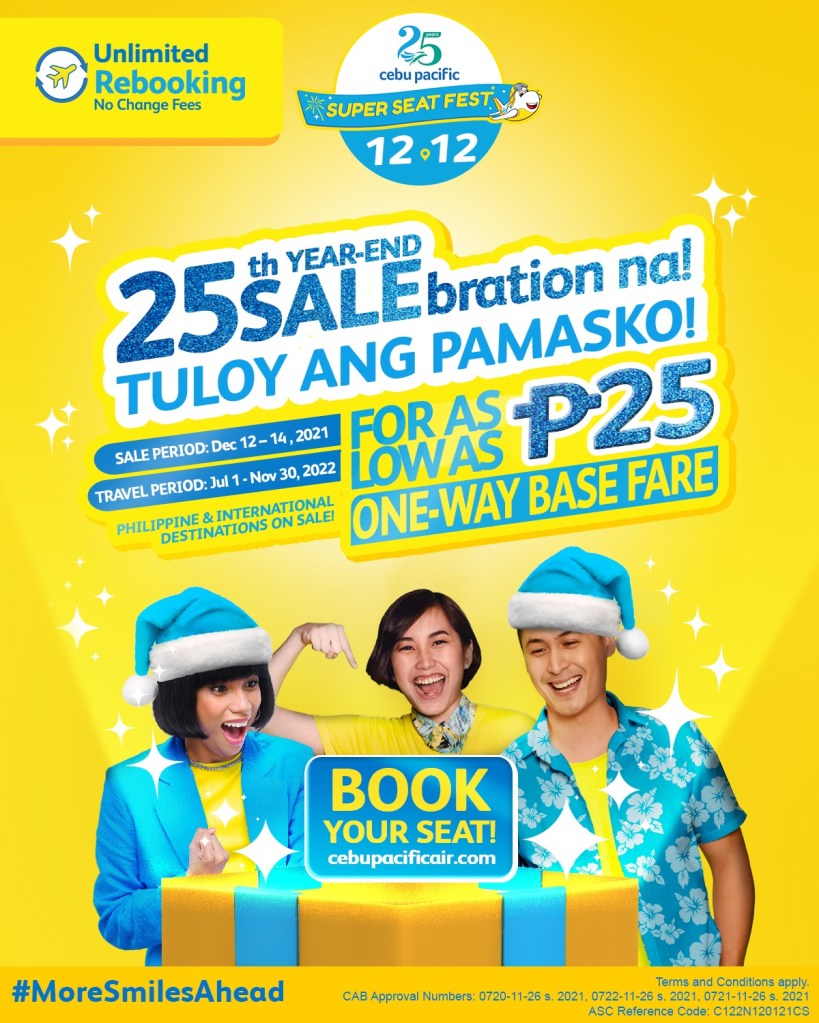 The Philippines’ leading airline, Cebu Pacific (PSE: CEB) is capping off its 25th year with a special 12.12 seat sale to further encourage everyJuan to travel and boost domestic tourism well into 2022.