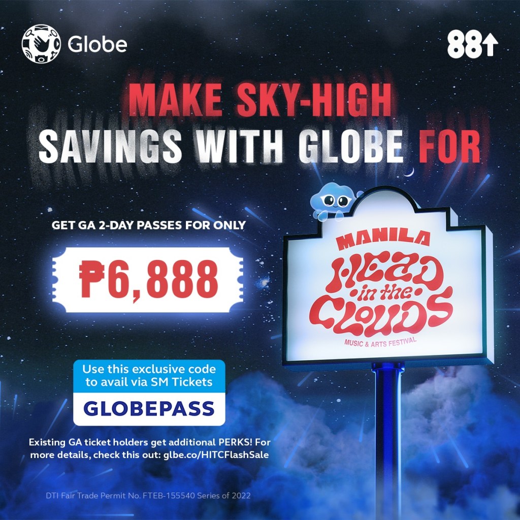 “We are thrilled to be part of Head in the Clouds and we want to share this excitement with our Globe Subscribers by offering Globe-exclusive discounts on the GA Passes. This way, we can expose more people not only to established Asian artists but also to creative young Asian talents who are breaking into the global stage,” said Pia Gonzalez-Colby, Globe Chief Marketing Officer.