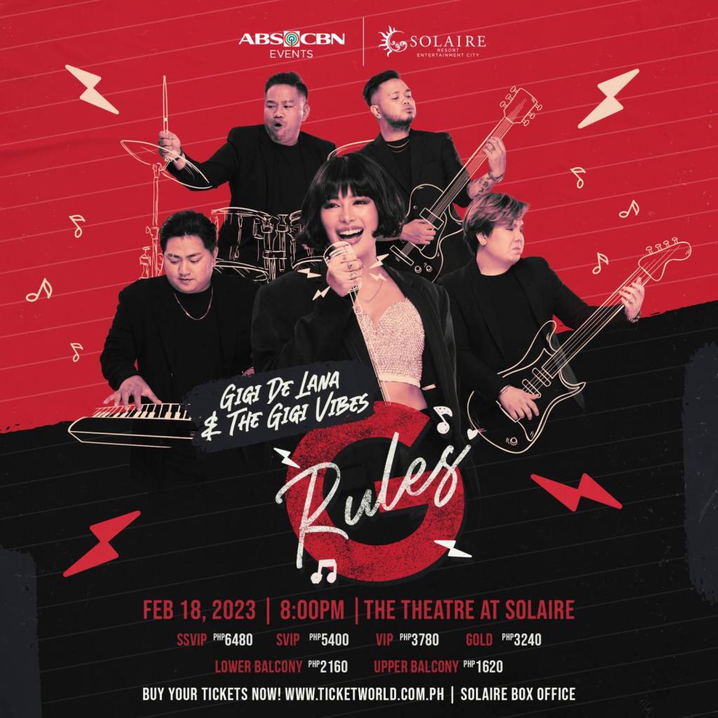 Join Gigi and the Gigi Vibes in the “G Rules” concert presented by ABS-CBN Events and Solaire Resort Entertainment City. Tickets are priced at P6480 (SSVIP), P5,400 (SVIP), P3,780 (VIP), P3,240 (gold), 2,160 (lower balcony), and P1,620 (upper balcony) available on ticketworld.com.ph and Solaire Box Office.