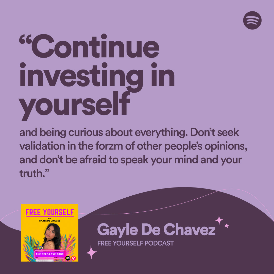 Gayle de Chavez of Free Yourself Podcast creates content with the hope of inspiring others. “I enjoy being a creator, pursuing the things that I love, and at the same time helping people love themselves.”