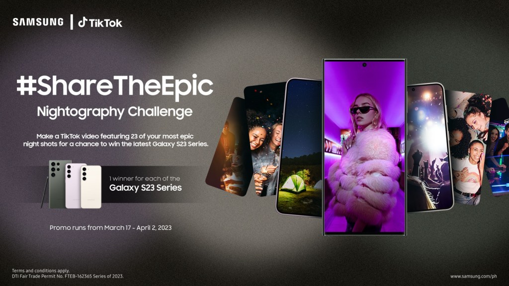 Up for the challenge? All you have to do is create a video featuring a photo-dump or a slideshow of 23 epic moments! Here’s the kicker: all the photos should be shot at night or in low light. Whether it’s a stunning view, photos from a night out with friends or an exhilarating concert, the more creative your shots are, the better! In order for your submission to count, make sure that you are following @SamsungPH on TikTok, tag them in your post, include the hashtags #ShareTheEpic and #GalaxyS23 in your caption, and that your post is set to public so your entry can be verified.