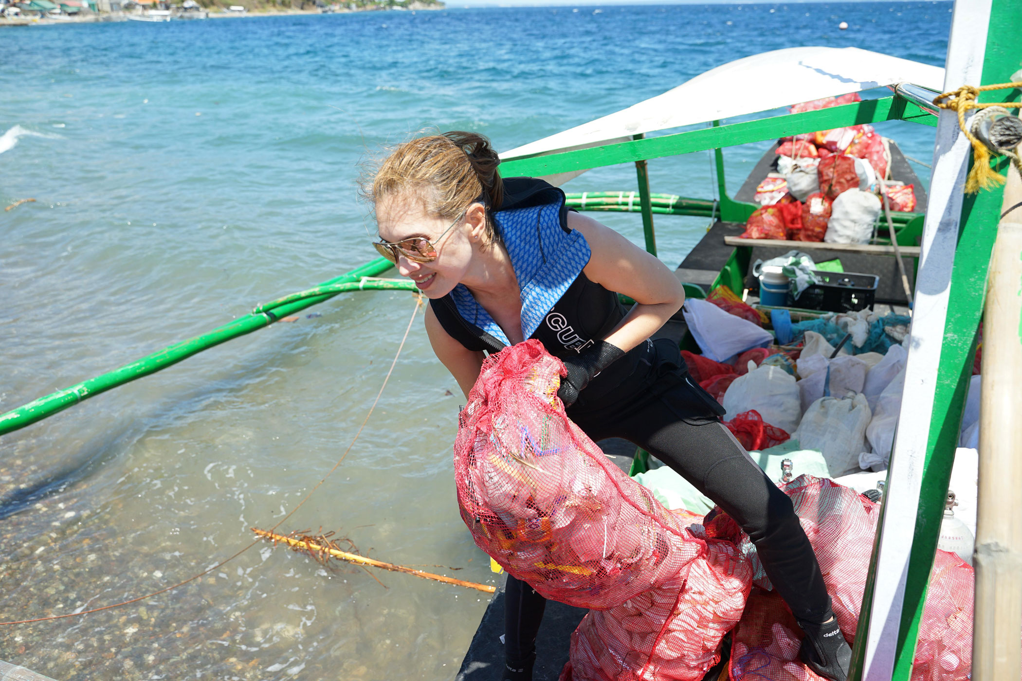 SOS Volunteers picking up waste from the shores and reef of Anilao, Batangas