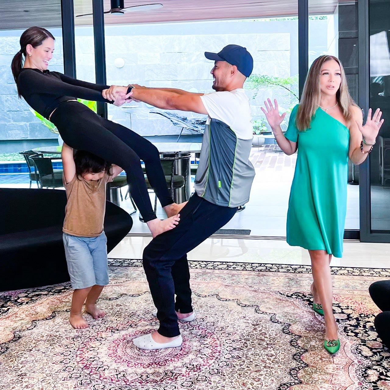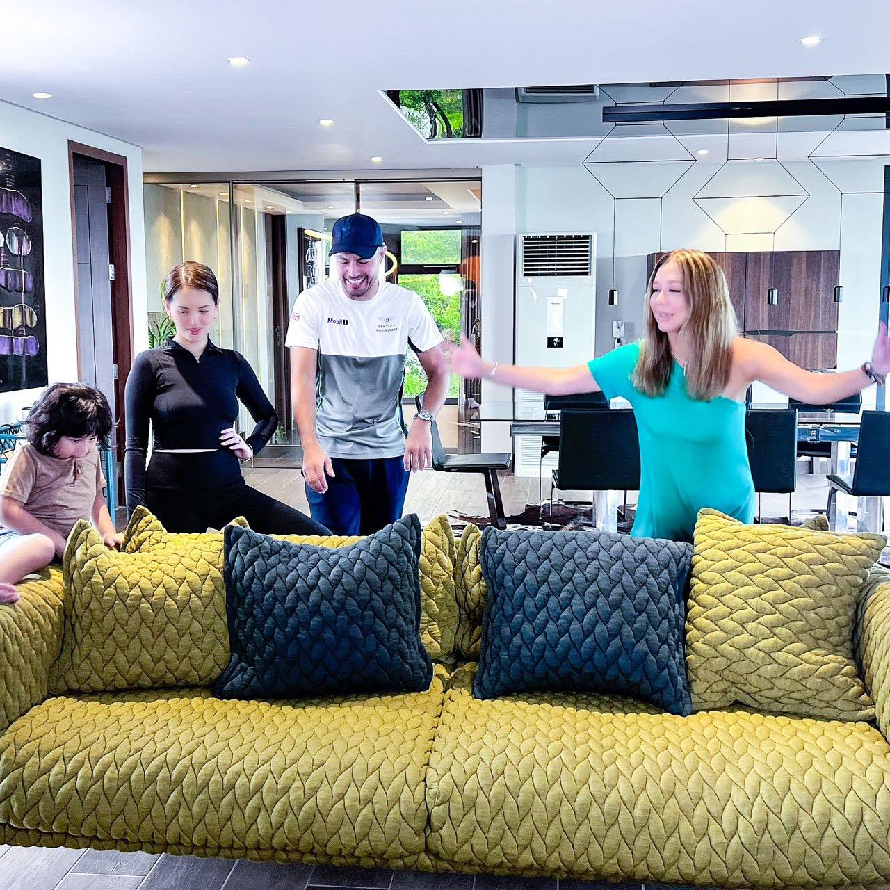 Korina toured their beautiful home with their son Elias, and met all their pets (a parrot, their giant koi fish, and a new chinchilla named Arthur) —plus she discovered that their main living room sofa has an interesting “story” to tell.