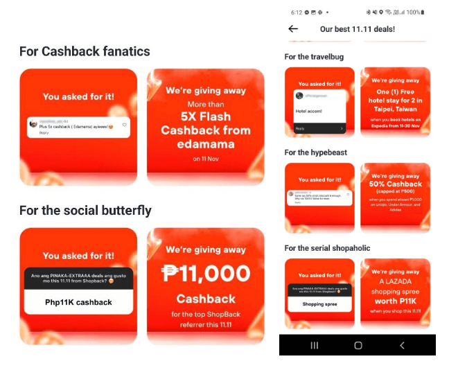 There are also exciting challenges that you asked for! A couple of weeks ago – users were asked what deals they want and that is being given! Some of these include a 50% cashback challenge on Nike, Adidas, and more, a chance to win an P11K shopping spree with Lazada, and even a chance to win hotel stays with Expedia.