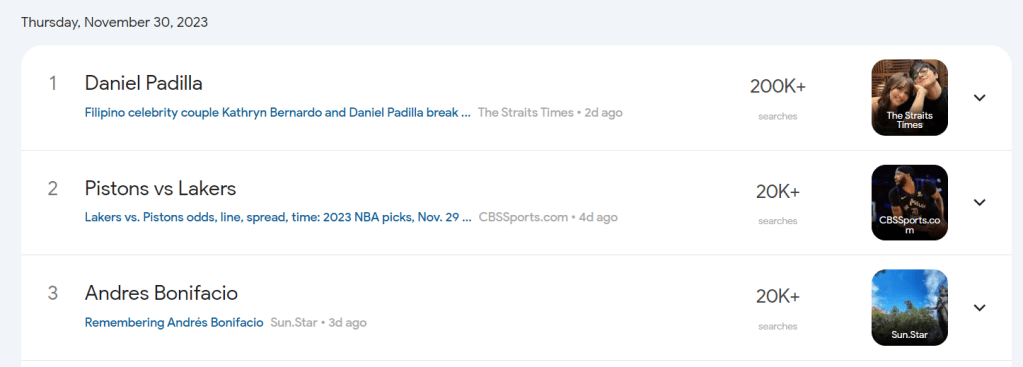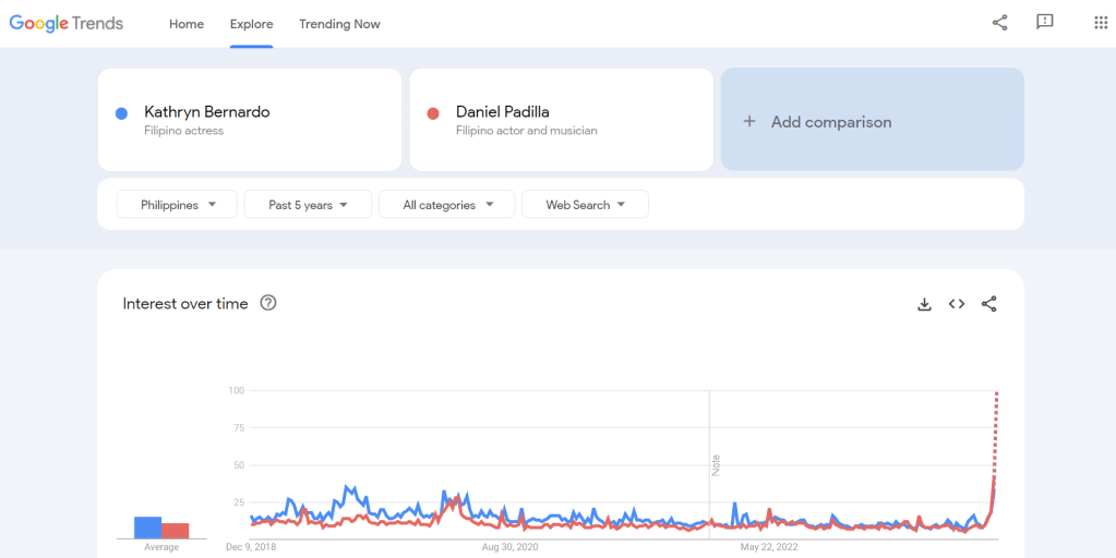 It didn’t take long for this major development to arouse the interest of fans and netizens, as they instantly took to Google Search to look up everything about Bernardo, Padilla, and the KathNiel love team. Google Trends recorded the highest interest the pair has had in the last five years, with both fully dominating searches in the week of November 26.