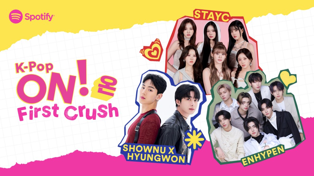 “Beyond the celebration of our commitment to helping K-Pop travel the globe and connecting Korean artists with fans and new audiences, Spotify’s K-Pop ON! (온) First Crush campaign is also a powerful expression of how K-Pop touches lives, spreads positivity, and unites listeners regardless of where they are from or the language they speak,” said Jungjoo Park, Korea Head of Music, Spotify. “We couldn’t be more thrilled to be working with ENHYPEN, SHOWNU X HYUNGWON, and STAYC to bring the first-ever Spotify K-Pop ON! (온) Singles to the world, and kickstart the movement in celebrating the shared love for the genre.”