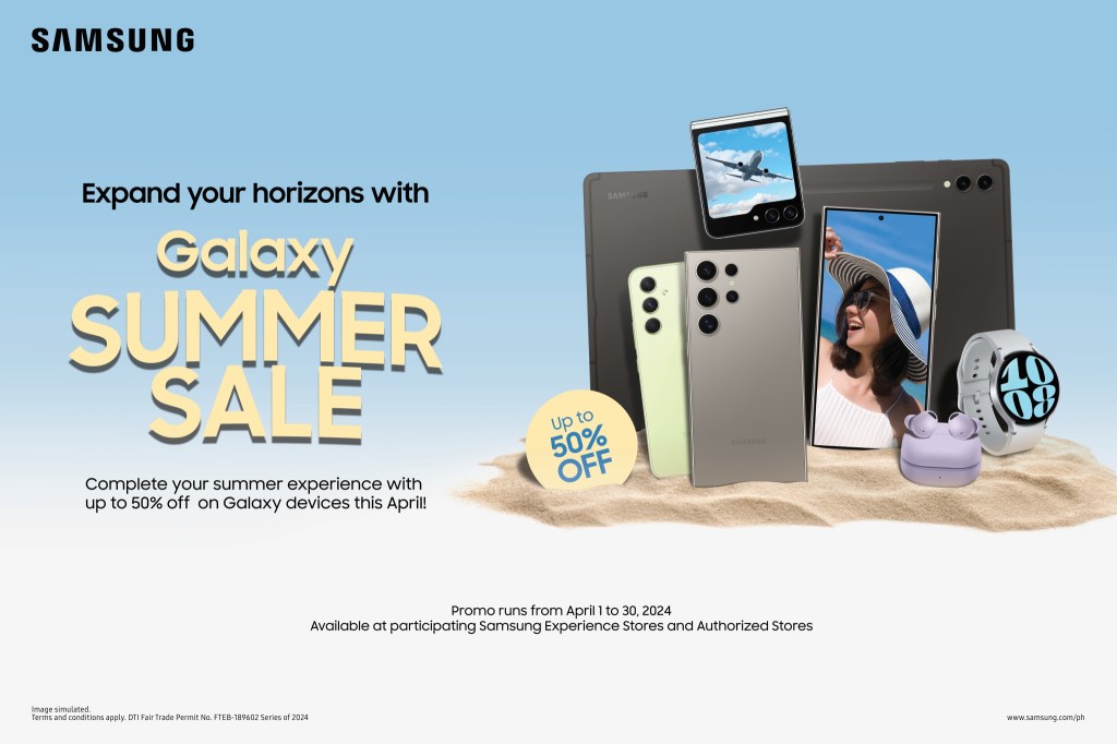 This summer, the world is your playground with these amazing Galaxy device deals! This promo is available until April 30 in Samsung authorized stores and dealers nationwide. For more information about the Samsung Great Summer Sale, visit https://www.samsung.com/ph/offer/online/2024/galaxy-summer-sale/.