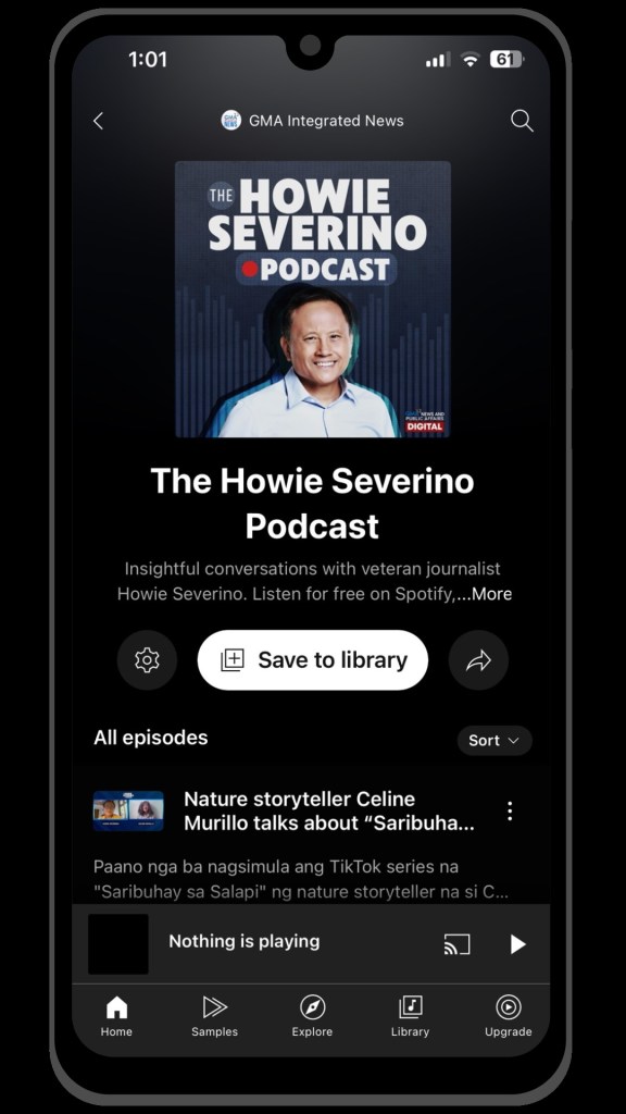 ● Get local updates on The Howie Severino Podcast: In this podcast, veteran journalist Howie Severino interviews some of the most influential people in the Philippines on topics ranging from human interest stories to political issues that matter. The Howie Severino Podcast is an insightful listen if you want to get the latest news available on YouTube Music in audio and video.