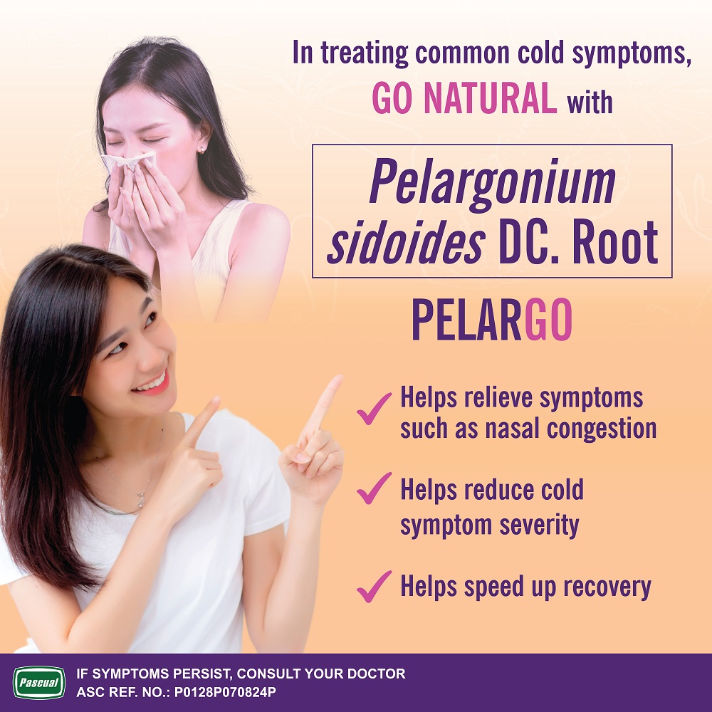 Say goodbye to sniffles and hello to wellness! Pascual Laboratories, one of the Philippines’ top pharmaceutical companies, introduces PELARGO—a natural solution to help ease common cold symptoms and keep you feeling your best this holiday season. PascualLab, one of the pioneers in phyto or plant-based medicines in the Philippinesand home of the no. 1 natural cough remedy Ascof Lagundi,¹ C-Lium Fibre and other natural-based offerings now comes PELARGO, derived from the Pelargonium sidoides