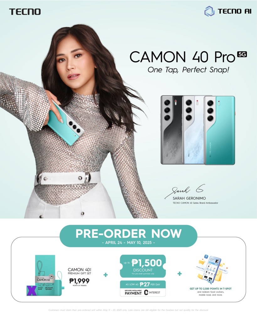 “Sarah Geronimo and TECNO CAMON 40 Series are a perfect match. Her star power, relatability and ability to inspire millions of Filipinos align with TECNO’s passion to bring innovative smartphones to Filipinos so they can embrace and capture life’s best moments. With the TECNO CAMON 40 Series, even hard to catch, motion filled moments can be captured with sharp focus and clarity,” said Nana Chen, TECNO Region Marketing Director.