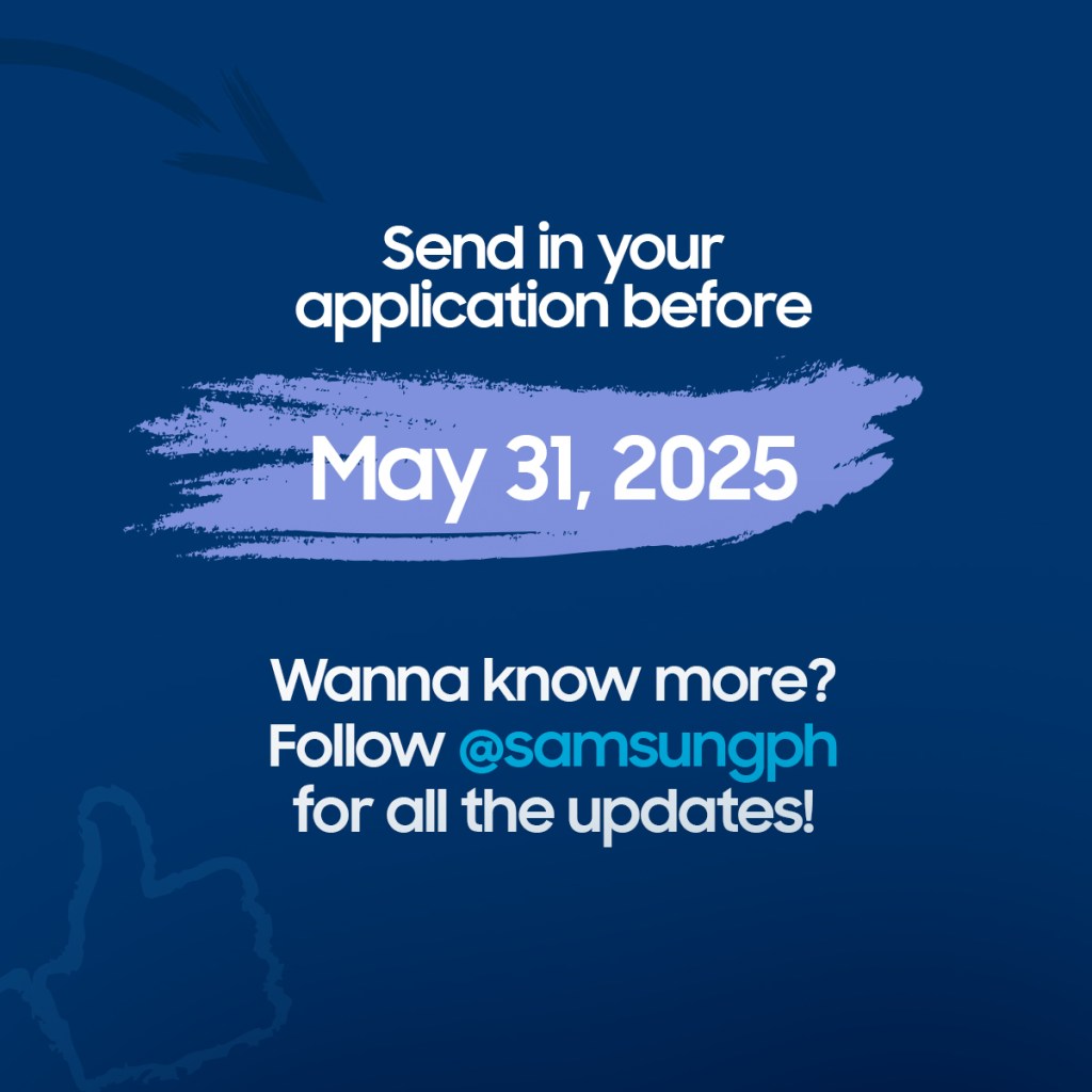 Ready to take on the Galaxy? Registration is ongoing and Samsung is calling for students ready to elevate their voice, ignite their potential, and grow in all the best ways. Applications are accepted until May 31, 2025. Visit https://www.samsung.com/ph/galaxy-campus for more information.