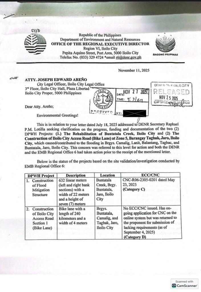 The Department of Environment and Natural Resources (DENR) has confirmed that reclamation and backfilling activities linked to the Access Road Section 1 (Bike Lane) Project in Barangay Tagbak, Jaro, which was facilitated by Iloilo City Lone District Representative Julienne “Jamjam” Baronda, significantly contributed to the severe flooding that affected five Jaro barangays in July.